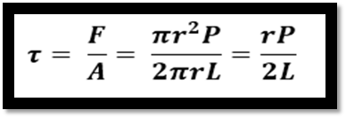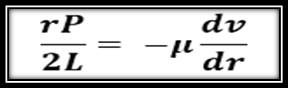 Si un fluido fluye en un tubo de longitud L y radio R, la fuerza en el extremo del cilindro de radio r será la diferencia de presión P entre los extremos del tubo, multiplicada por el área seccional recta del cilindro, y el esfuerzo cortante será: