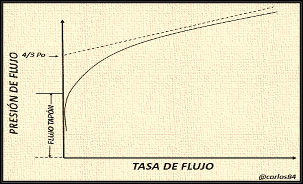 También es importante resaltar que existe una relación aproximada entre presión y tasa de flujo, los cuales se derivan de la asíntota de la curva mostrada en el gráfico. En este gráfico se representan una serie de variables que no están explícitas en sí, pero que si se correlacionan con un modelo de ecuaciones deben de involucrar variables como el área existente entre la curva total y la asíntota.