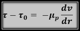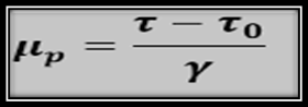 Esta ecuación modela el comportamiento de flujo plástico de Bingham, del cual el término tao sub cero representa el esfuerzo mínimo requerido para poder iniciar el flujo, y μ_p es la viscosidad plástica, si despejamos μ_p de la ecuación Nº1 obtenemos la siguiente ecuación: