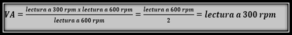 Es importante mencionar que la viscosidad aparente se puede obtener con la lectura del viscosímetro rotacional con solamente la lectura a 300 RPM, en caso tal de que se tenga a mano la lectura de 600 RPM, es necesario que ese valor que se tenga de viscosidad con la lectura de 600 RPM se divida entre dos.