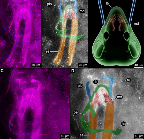 A small counter argument on this specimen comes from a study that used 3D modeling techniques and concluded the mandibles and other features resembled a myriapod (centipedes) instead.
