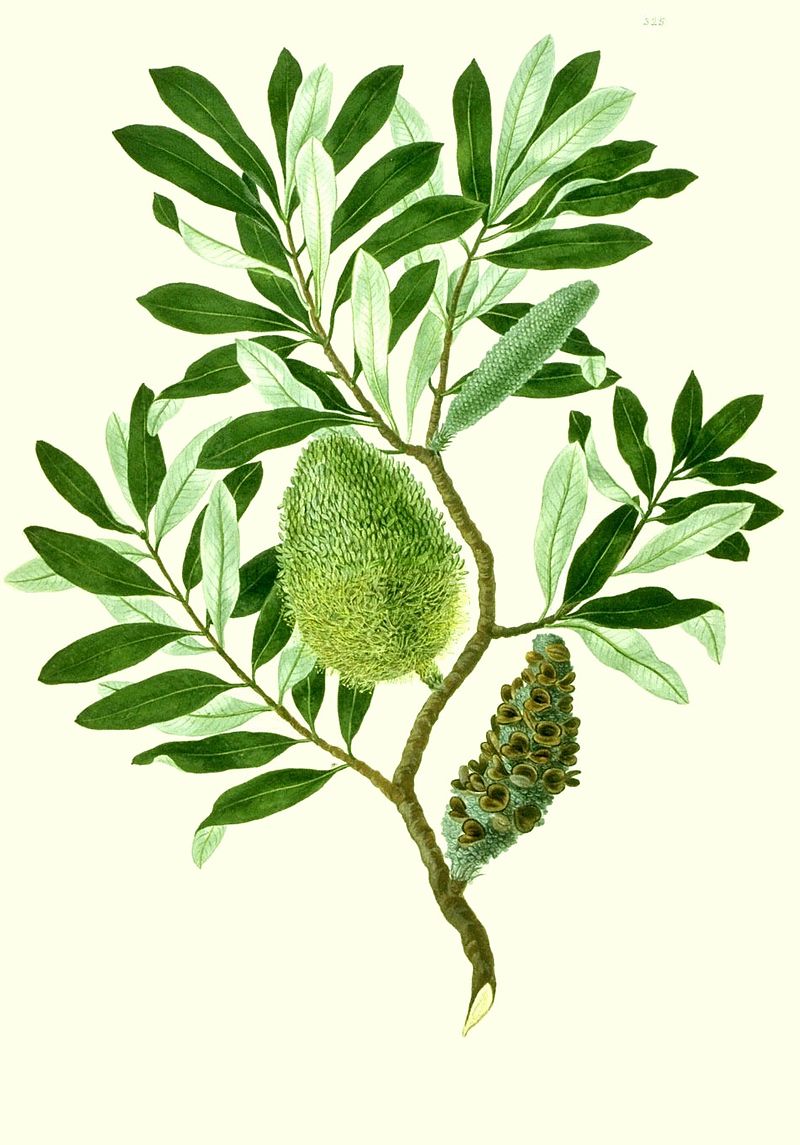 Banksia integrifolia is named after Joseph Banks. This is a watercolour-on-paper drawing of Banksia integrifolia. It was drawn and at least partly coloured by Sydney Parkinson, Sir Joseph Banks' botanical artist who was present when the species was first collected at Botany Bay, Australia. It is not known whether the drawing was completed by Parkinson, or whether it was delivered unfinished for completion by one of the London artists employed by Banks for that purpose.