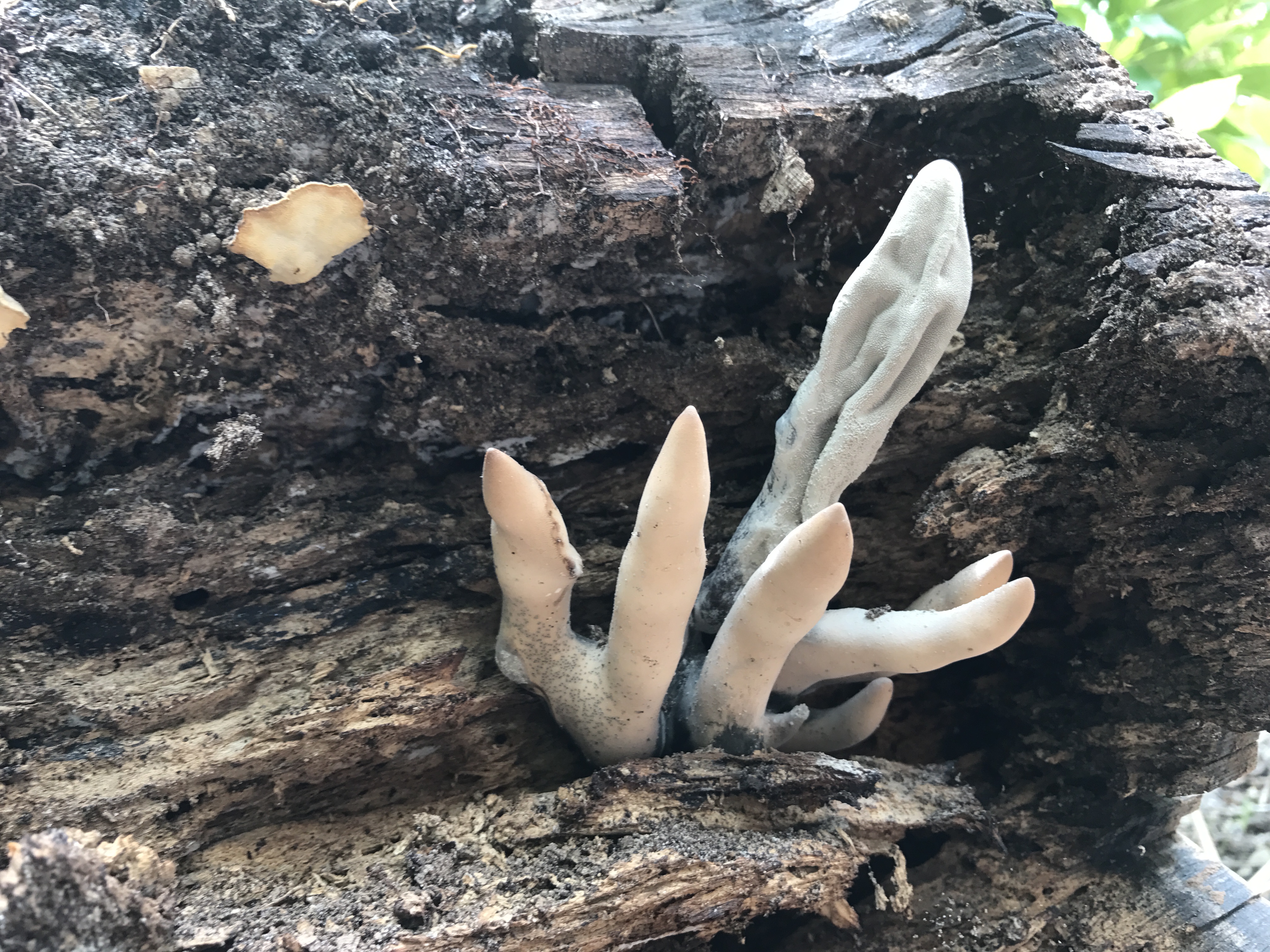 I understand that certain mushrooms (or other fungi) are specific to a particular species of tree to produce the rotting wood. For example, beech trees harbor specific mushrooms or "club fungi" or "dead man's fingers."