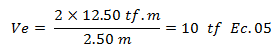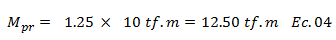 Teniendo claro el significado de cada una de las variables que intervienen en la estimación de “Ve”, procedamos a explicar su proceso de cálculo. Obtenemos primero “Mpr” con ayuda de la ecuación N°01, y basados en el “Mc” obtenido en la imagen N°3, equivalente a “10 tf.m”: