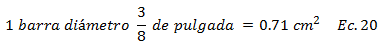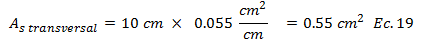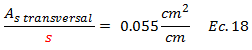 En la elección del diámetro de la barra del acero de refuerzo transversal, entra en juego la especificación normativa del apartado 7.5.2 de "FONDONORMA 1753:2006", en el que se indica que el menor diámetro a utilizar corresponde a “3/8 de pulgada”. Esta barra tiene un área de sección transversal de: