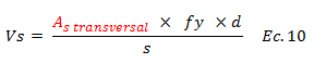 Con respecto al aporte a corte del acero “Vs” el apartado 11.4.3 de “FONDONORMA 1753:2006”, nos presenta la siguiente ecuación: