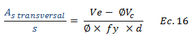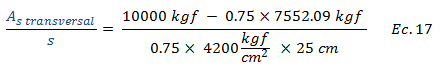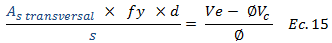 Dado que se desea estimar el área de acero de refuerzo transversal, el cual está asociado al término resaltado en color “rojo”, es necesario resolver la ecuación N°13 en función a esta variable, es decir: