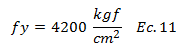En esta ecuación el término “fy” representa el límite de fluencia del acero, te invito a la revisión de la referencia N°04 para que profundices en este valor, el cual corresponde a: