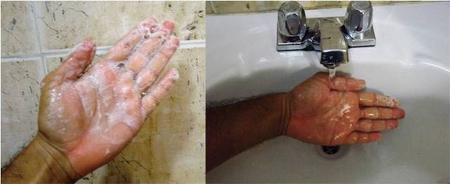 Al enjuagar las manos con agua dura se retira el jabón más rápido pero también se producen jabones de calcio que causan resequedad. Fuente: @emiliomoron.
