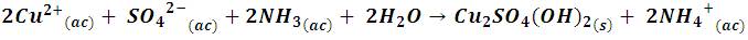 With the addition of ammonia the solution takes on a gelatinous appearance due to the formation of a turquoise precipitate according to the following reaction: