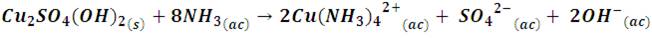 However, by continuing to add ammonia solution, this precipitate dissolves forming tetraamine complex, Cu(NH3)42+, according to the following reaction,