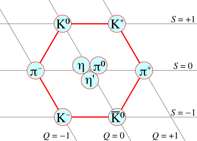 The spin-0 nonet of mesons. User:E2m, User:Stannered, Public Domain