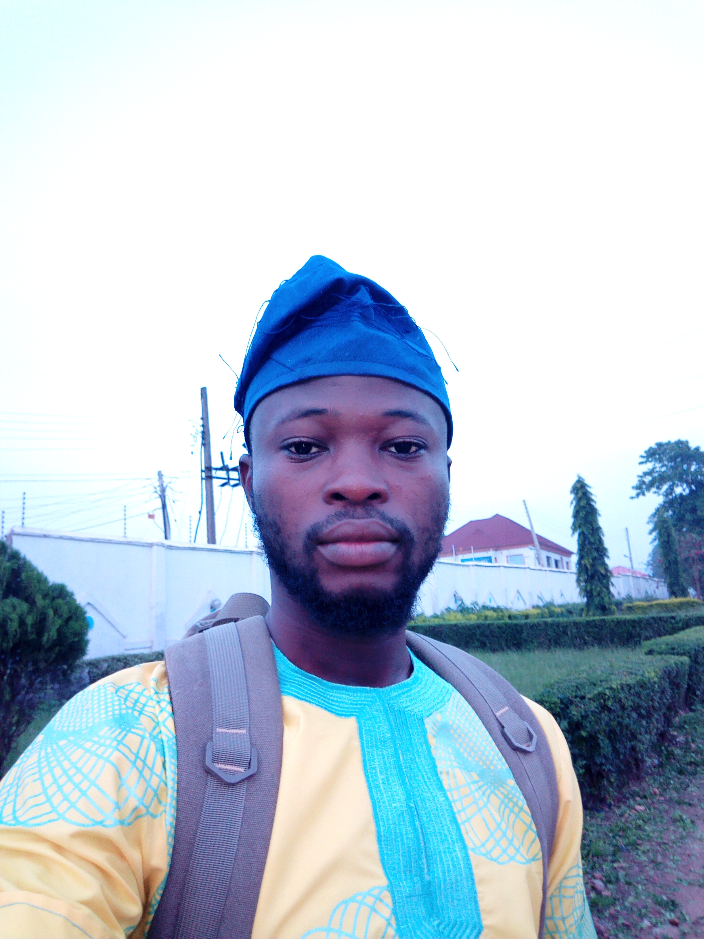 [That's a selfie of me in my favorite native attire at a junction by 6:30am waiting for @gentleshaid to drive by and pick me up]