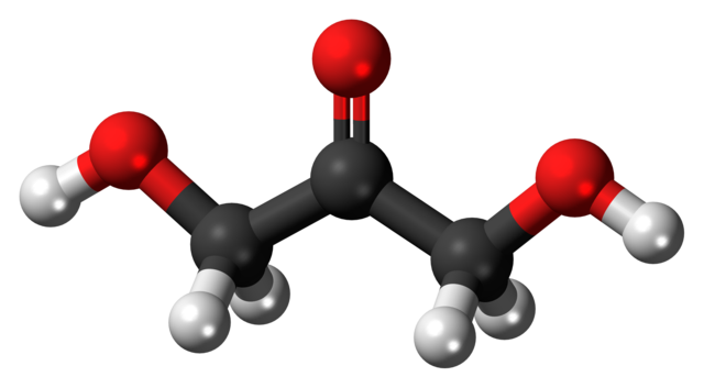 Ball-and-stick model of the dihydroxyacetone molecule. Jynto (talk), CC0