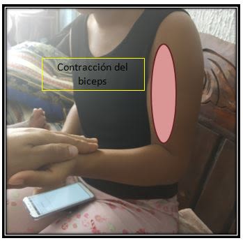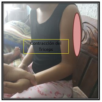 Luego se pide una contracción del músculo el cual se quiere estirar aplicando resistencia al punto de fatiga para estimular el reflejo miotático inverso. En este caso se pide contracción del biceps braquial.