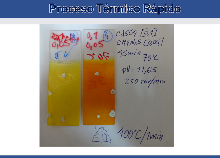 El tratamiento térmico produce cambios importantes sobre las películas delgadas de CdS, ya que modifica su coloración (posiblemente un cambio estructural y de brecha de energía) y su resistencia eléctrica aumenta en algunos casos o se "quema" la película destruyendo su conductividad.