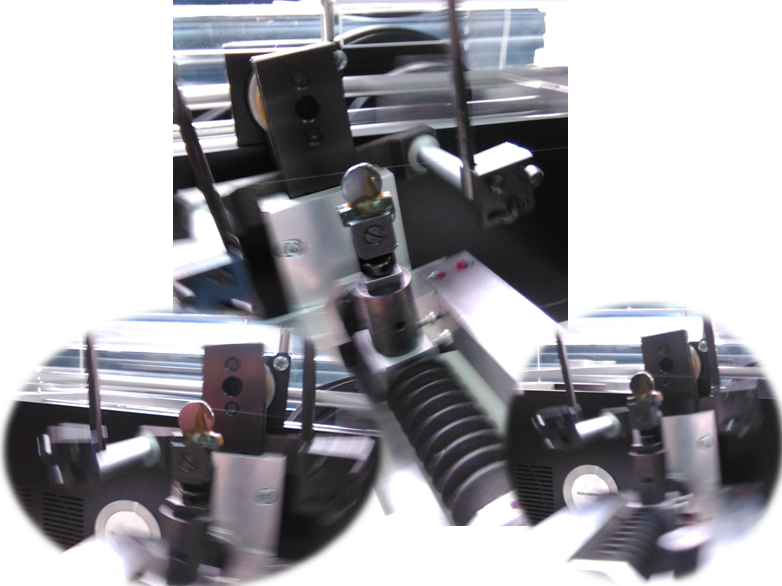 Este hilo viene enrollado en un carrete y se extiende por todo el sistema de corte y se enrolla lentamente en otro carrete, evitando así que se desgaste en un solo sitio y tienda a romperse el hilo.
