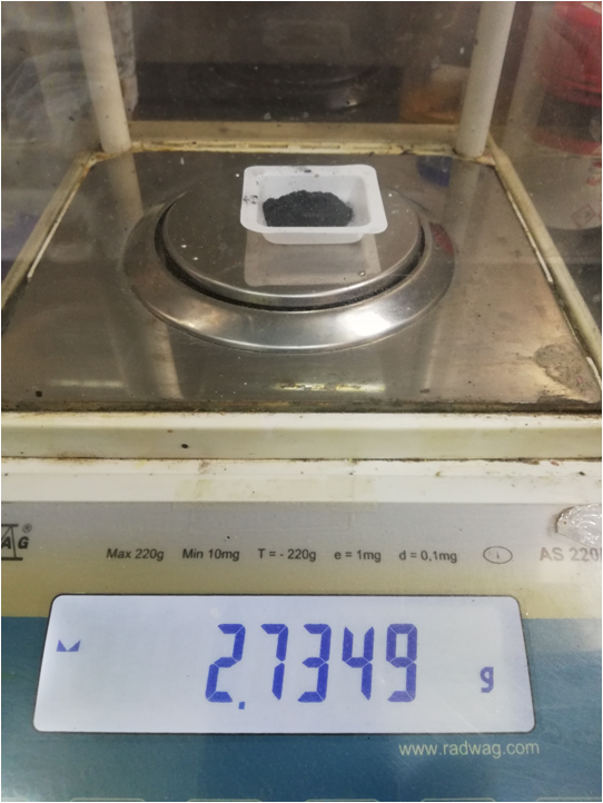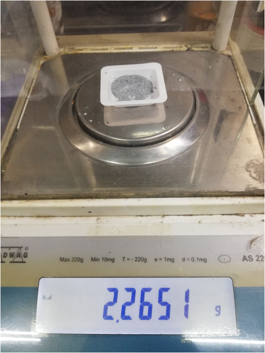 - El Selenio con 99,99% de pureza, ha sido triturado y pasado por tamiz para homogeneizar el tamaño de grano en una masa de 2,7349 g.