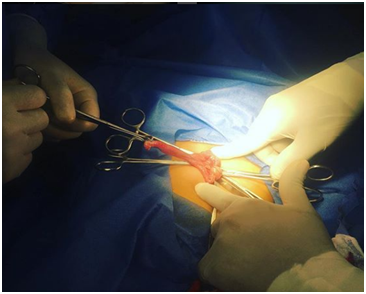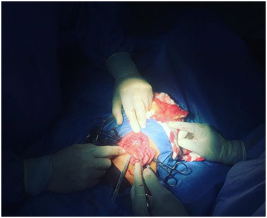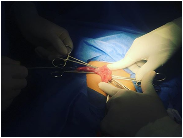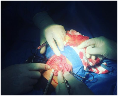 And it was decided to carry out in the same way an incidental appendectomy through trans umbilical incision, (since the clinic of both entities is usually very similar as previously explained, and the coexistence of both clinical conditions is not common, but it have been cases reported).