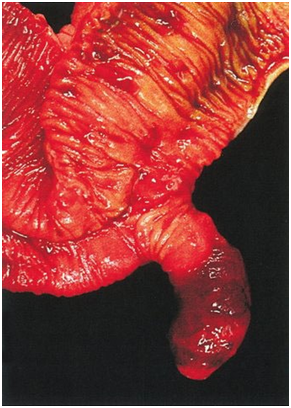 The image shows the sample of a Meckel Diverticulum, extracted surgically as a result of an inflammatory process.