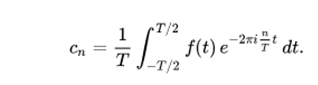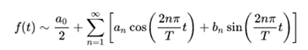 Google translate: A series of Fourier is an infinite series that converges punctually to a periodic function and continuous to pieces (or by parts). The Fourier series is the basic mathematical tool of Fourier analysis used to analyze periodic functions through the decomposition of this function into an infinite sum of much simpler sinusoidal functions (like combination of sines and cosines with whole frequencies). The name is due to the French mathematician Jean-Baptiste Joseph Fourier, who developed the theory when he studied the heat equation. He was the first to study such series systematically, and published his initial results in 1807 and 1811. This area of research is sometimes called harmonic analysis.