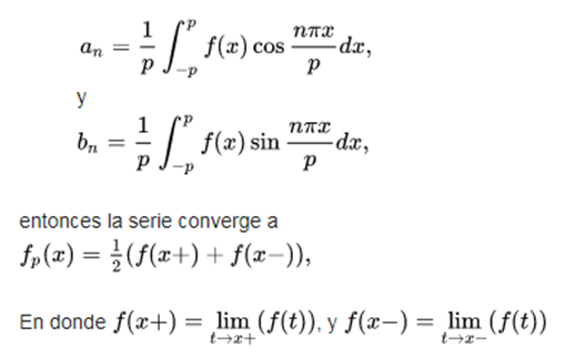 Suppose that f (x) is a periodic function, piecemeal and bounded, that in a period has a finite number of local maximums and minima and a finite number of discontinuities, of period 2p. Sean
