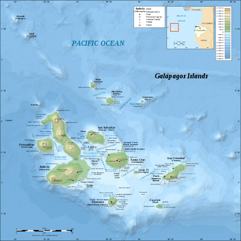 Topographic and bathymetric map of the Galápagos Islands, Ecuador. Eric Gaba, CC BY-SA 3.0