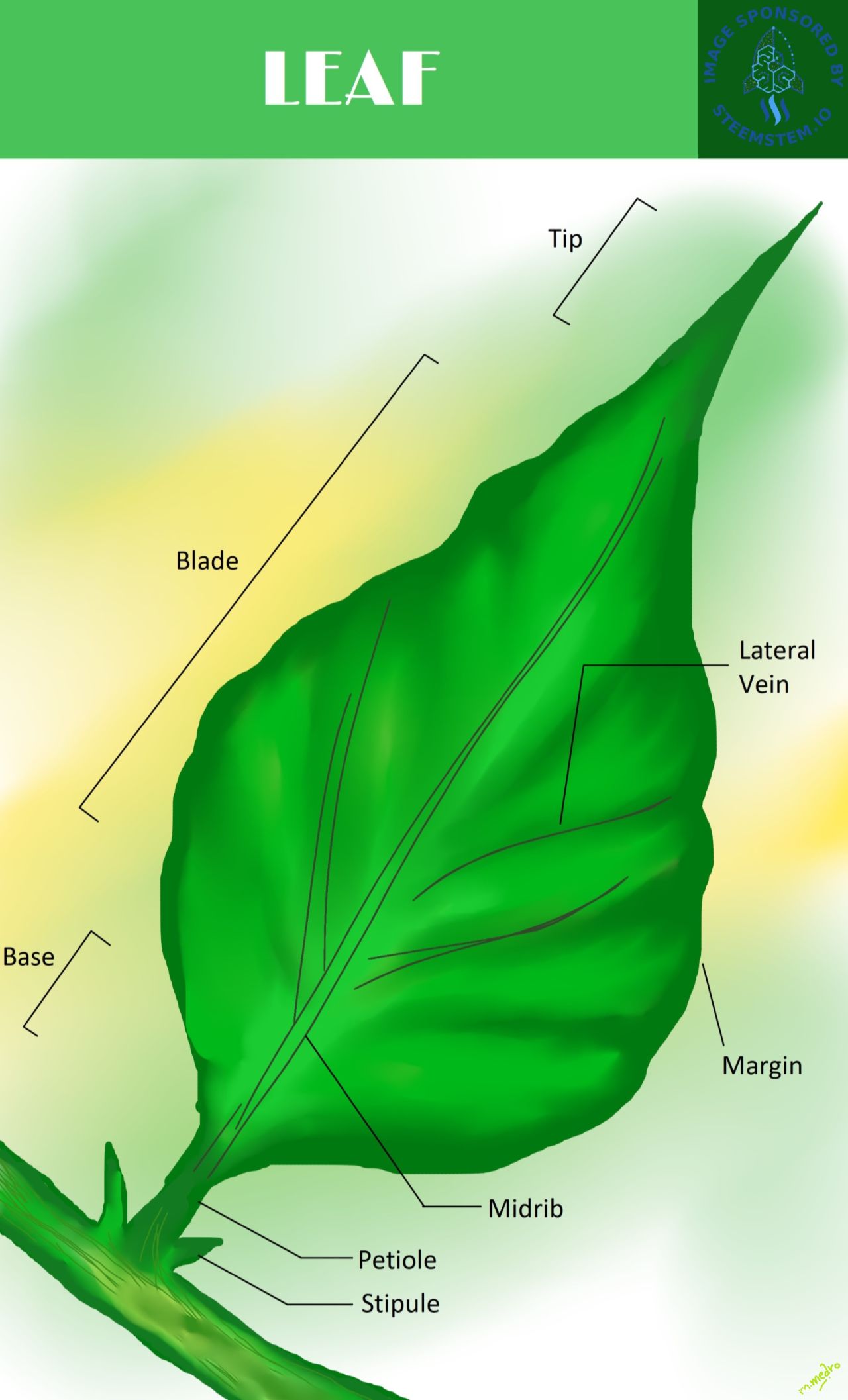 This is a labelled diagram of a plant leaf.