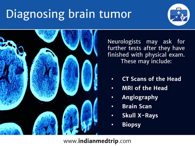 Diagnosis of brain tumor begins with physical exams which includes a very detailed neurological examinations and a look at ones medical history. One's doctor will conduct a test if the cranial nerves which originated from the brain is intact. With the aid of ophthalmoscope, the pupils reaction to light are checked. The doctor may also evaluate: