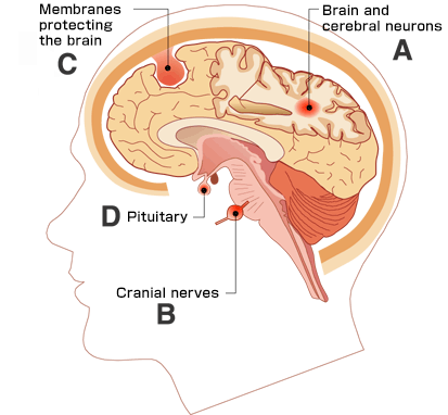 Symptoms of brain tumors depend on the location and size of the tumor. Headache is a common symptom of brain tumor which can also be worsened by coughing,exercise and sneezing. Others include: