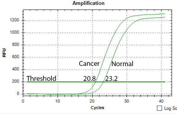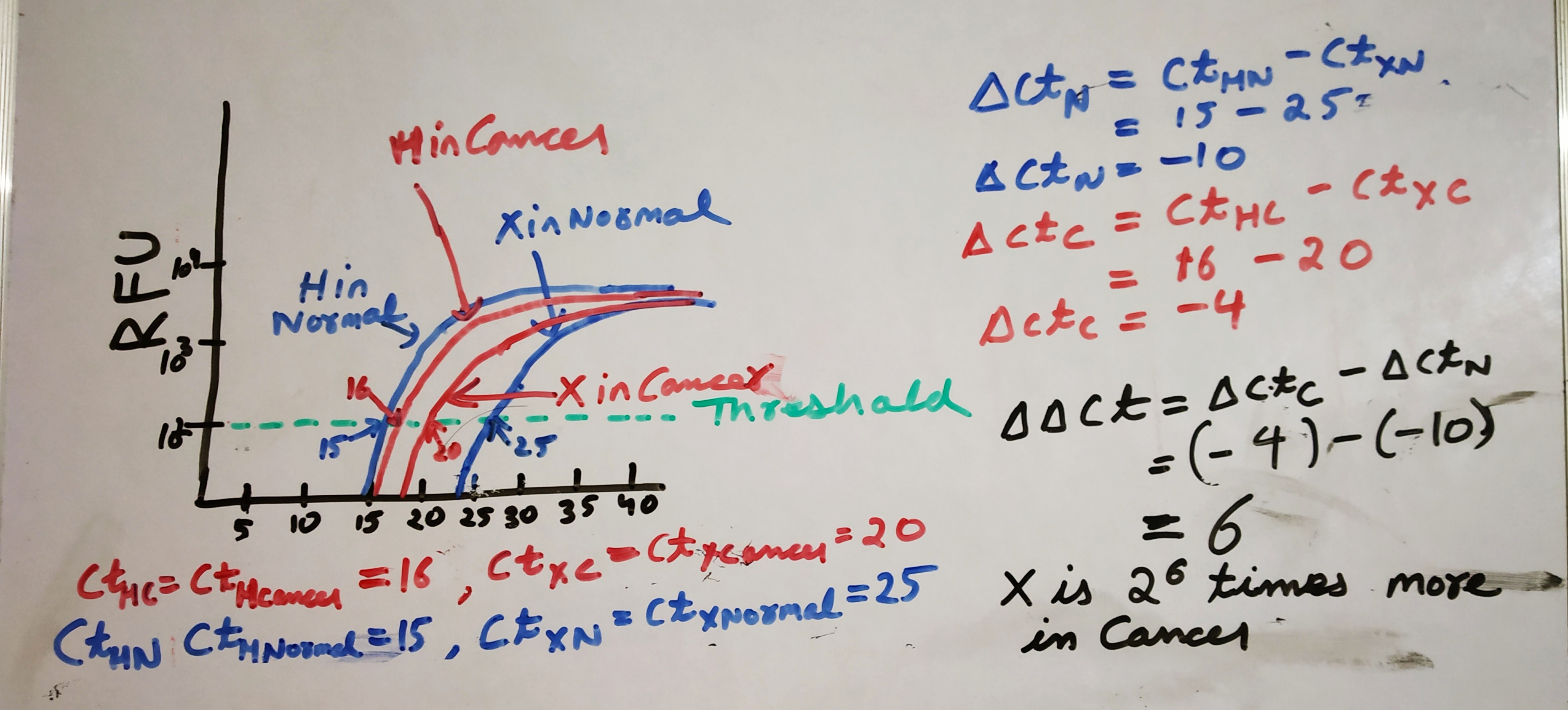 Now, to calculate the relative expression of X in cancer vs normal tissue, we will calculate delta-delta ct