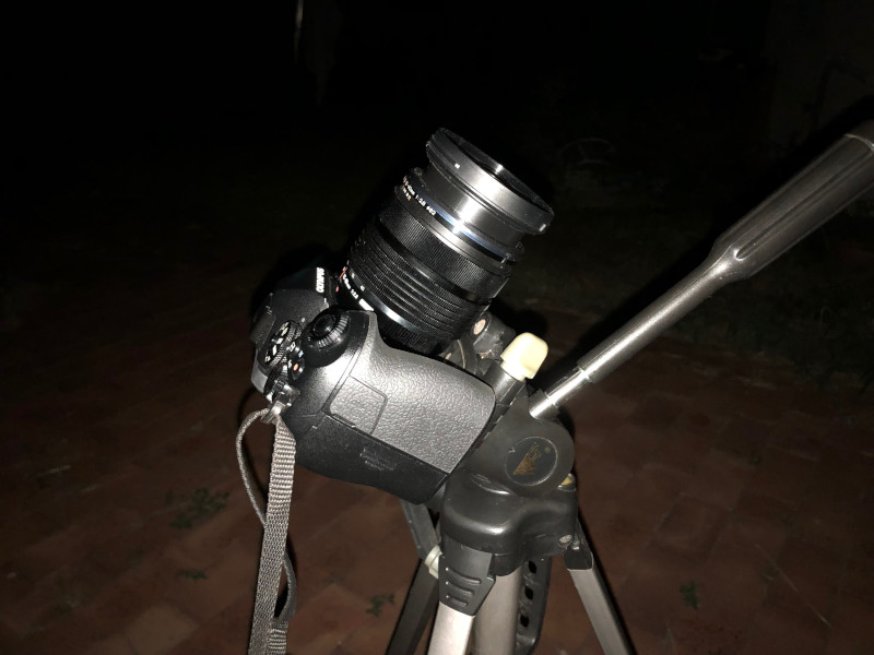 If you fail to see the comet, you can always try imaging it using a camera on a tripod with a standard lens. I tested this out on November 12, with this setup which is an Olympus OMD EM1mk2 and a 12-40mm standard zoom lens on a tripod. Even though the Olympus OMD EM1mk2 is a very nice camera, it is not particularly good for low light.