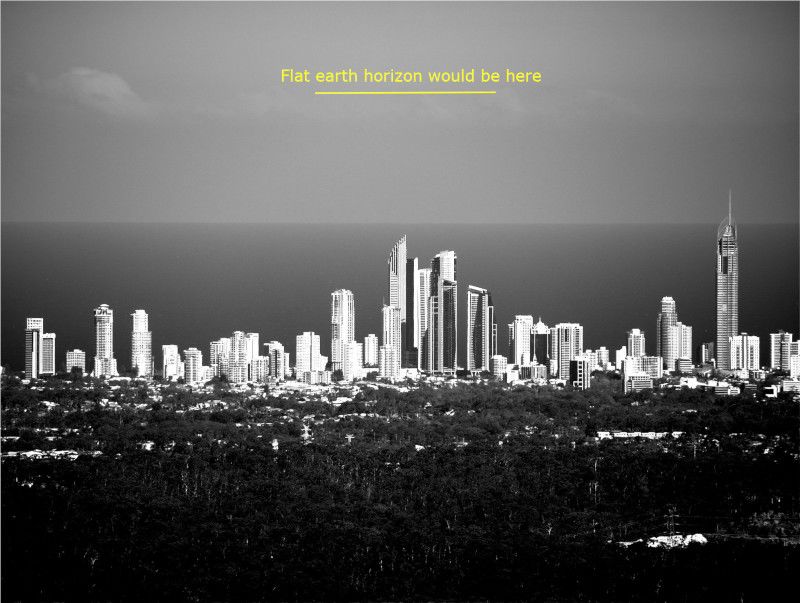 Since been involved in a couple of recent flat earth debates I’ve been more conscious of making observations of the horizon when the chance arises. A good opportunity arose on Saturday when I did a short detour over Tamborine Mountain in Queensland, Australia, which gives spectacular views of Australias Gold Coast from an elevation of 520m (1700 feet). While Admiring the view I noticed the horizon almost matched the tops of the buildings as you can see in this image I captured.