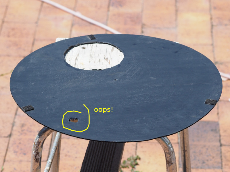 Even with the mask to cutdown sunlight entering the telescope tube, this hole was burn't in it by focused sunlight!