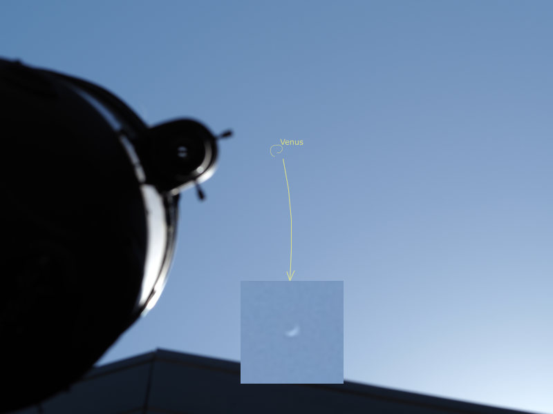 I was curious to see if I could capture the extension of the crescent due to the scattering effect. It seems like Venus was still too far from inferior conjunction to show this effect, but when I enhance the image from above, you can see a small amount of extension to the crescent. Have a look here and see what you think.