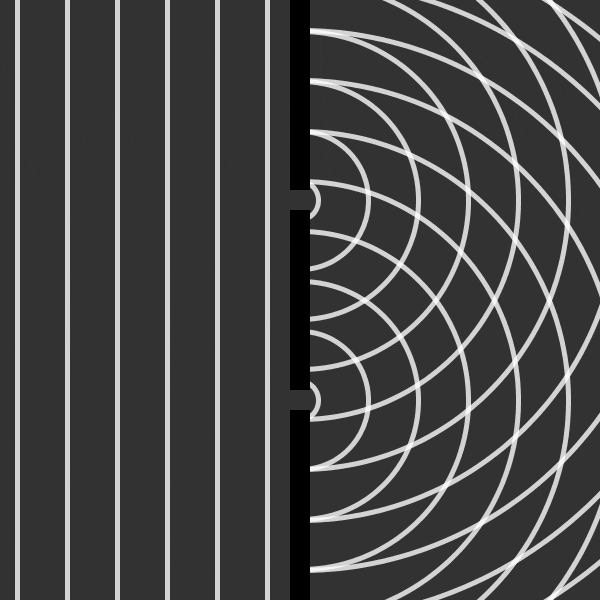 Perhaps one of the most perplexing experiments in science is called the double-slit experiment. This experiment shoots photons at a barrier that has two small, closely spaced together cuts which allows the light to pass through. Behind this barrier is a wall where an interference pattern is observed. The interference pattern is a telltale sign that we have waves causing interference. When wave crests line up, a bright band is observed, and when a wave meets a trough, a dark band is observed due to them cancelling each other out.