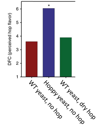 The only odd thing I noticed about this data was that dry hopped beer wasn’t significantly hoppier in taste than beer brewed without traditional dry hopping. You’d think it would be which makes me a bit less confident in the taste test. The authors don’t address this discrepancy which is a bit concerning. They also don’t mention whether or not the beer tastes any good. It’s possible that this “hoppy” yeast makes a bunch of secondary metabolites that taste terrible.
