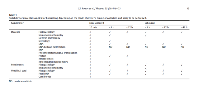Optimising sample collection for placental research, Burton et al. Placenta, 2014 (https://www.ncbi.nlm.nih.gov/pubmed/24290528).
