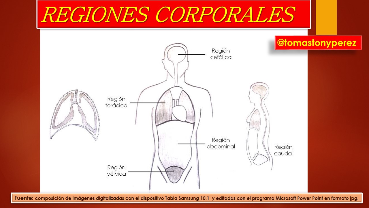 Lo primero es estar claros en que las regiones corporales son: cabeza, cuello, dos extremidades superiores y dos inferiores. También es importante acotar que es común dividir el tronco en tórax y abdomen. De hecho, las estructuras de carácter principal poseen nomenclatura anatómica haciendo esas y otras consideraciones, por lo que el aprendizaje de la terminología nos da una base sólida para aprender el nombre de aquellas estructuras que se encuentran aledañas, relacionadas o subyacentes.