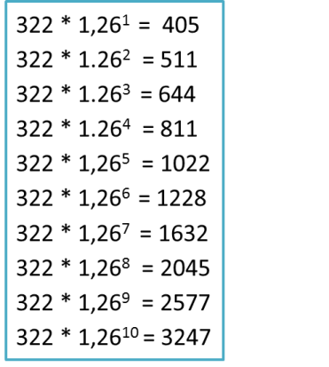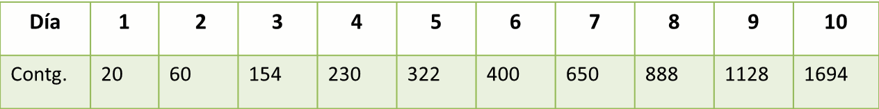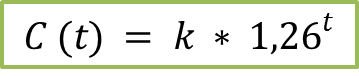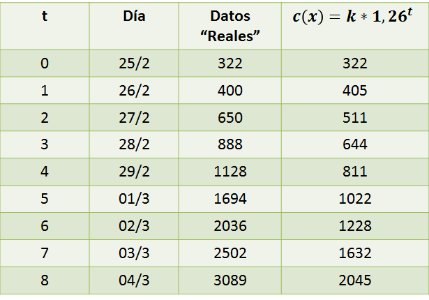 Donde C(x) es el número de casos, k el número de casos iniciales y t es el tiempo.