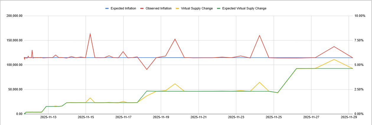 And, just for fun, since I created an automatic download and a new visual in Google Sheets, here's a graph of how supply growth and blockchain inflation are matching up against expectations.