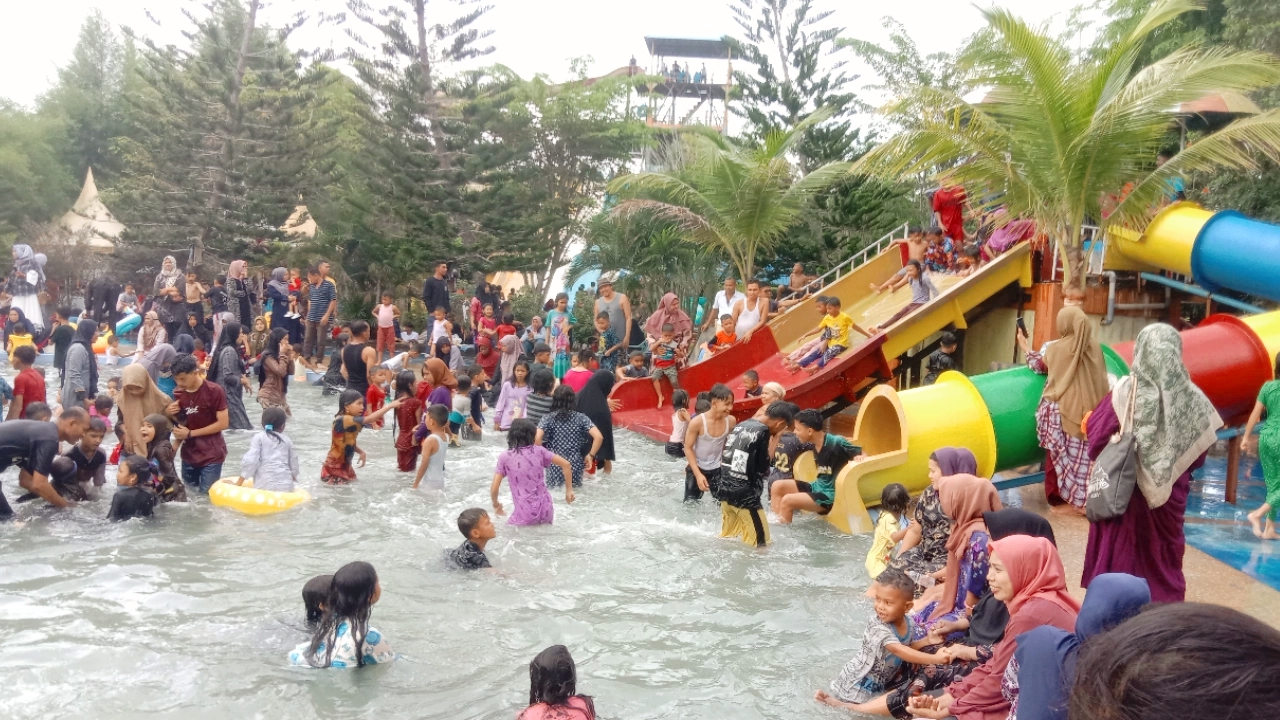 In the irrigation pool we can also bathe, usually in the irrigation pool there are many old people. Not only there is a swimming pool, but there are also rides for games, such as a slide in the children's pool, adults, and in the youth pool there is a tube slide. There are also many sellers of various types, such as sellers of noodles, rice, toys, ice cream, swimming goggles, swimwear for children and many others. There is also a place to rest after a tired swim, and there is also a place to leave our luggage but have to pay.