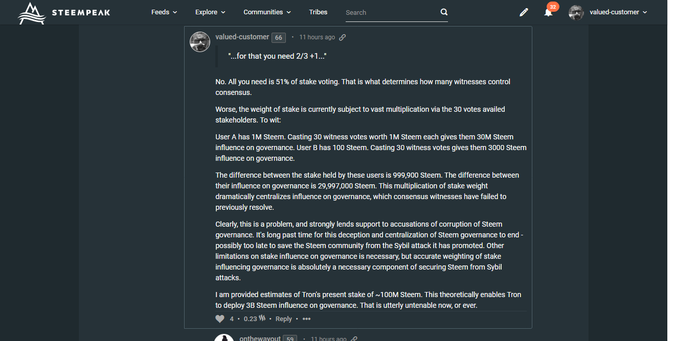Hab nicht mal die Hälfte verstanden, aber wie es aussieht, kann also Sun mit seinen 20% aller Steem nicht viel anrichten, oder? Zumindest was die Richtung der Chain betrifft, den Aktienkurs könnte er auch wieder nach unten schicken.