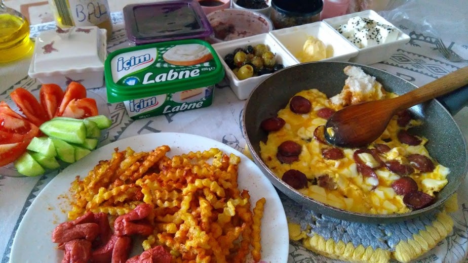 Tahmin ettiğiniz üzere sabah kahvaltısı. Alanında uzman insanlar, sağlıklı bir kahvaltıyla güne başlayan insanların, kan şekerleri dengelendiği için gün içinde fazla acıkmayarak daha az besin tükettiklerini söylerler. Bene güne başlamadan önce mutlaka kahvaltı yaparım. Tabi bugün işte olmadığı için vakitten kısmadan geniş bi kahvaltı yaptım.