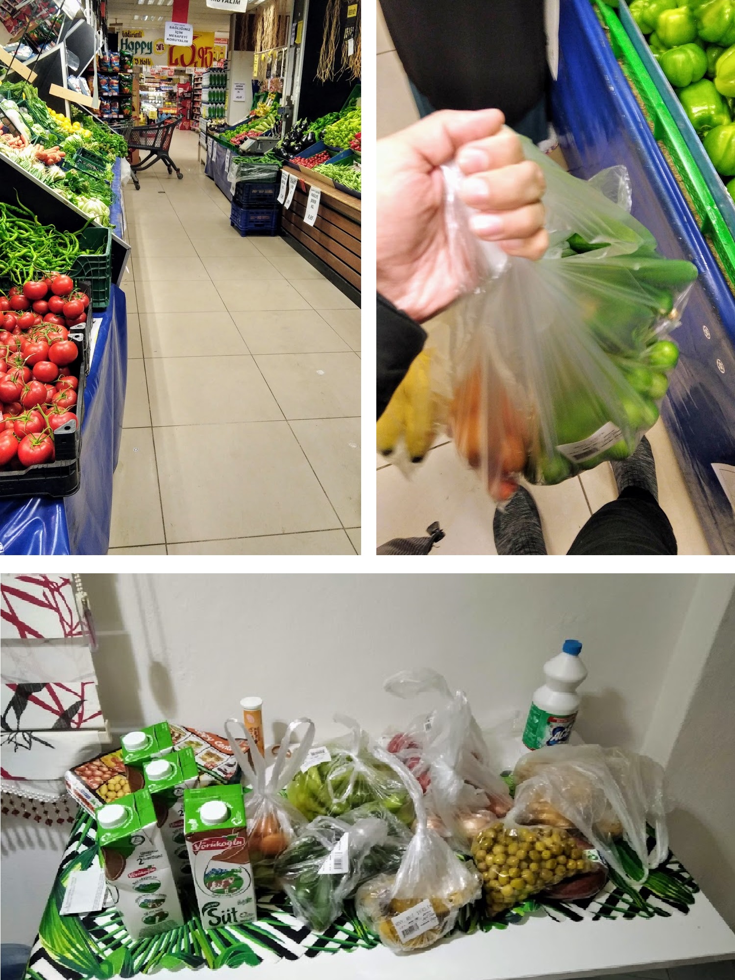 Eve dönerken markete uğradık. Mutfak eksikleri için sebze meyve gibi şeyler aldık. Neyse ki marketin boş zamanına denk geldik, yoksa kasada sıra gelene kadar bi dünya zaman geçiyor.