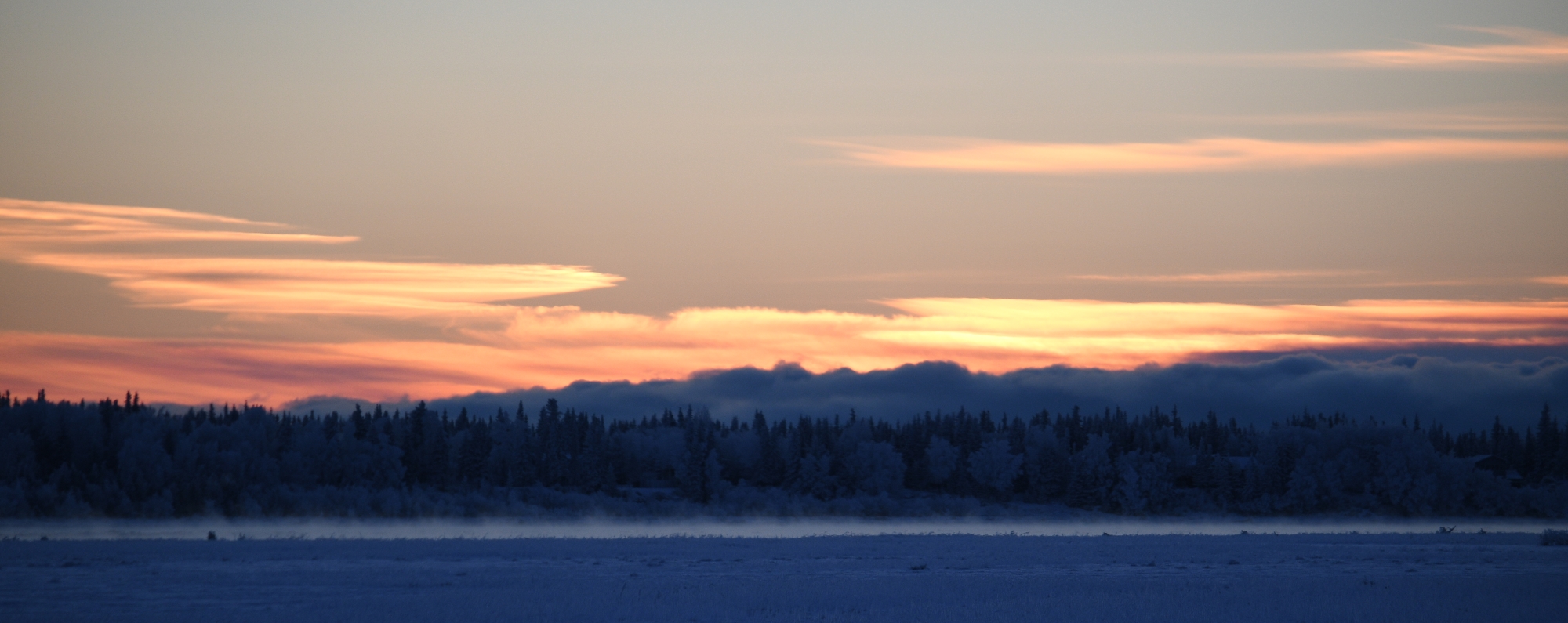 The day came to a pretty spectacular end with the sun setting behind a fog bank in the Cook Inlet. If you look close you can see how cold it was from the steam rising off of the Kenai River. We, like many people in the northern hemisphere this weekend had a very cold first weekend. It is so cool to actually see steam being created by water that is barely above freezing, but that is how cold the air was yesterday.