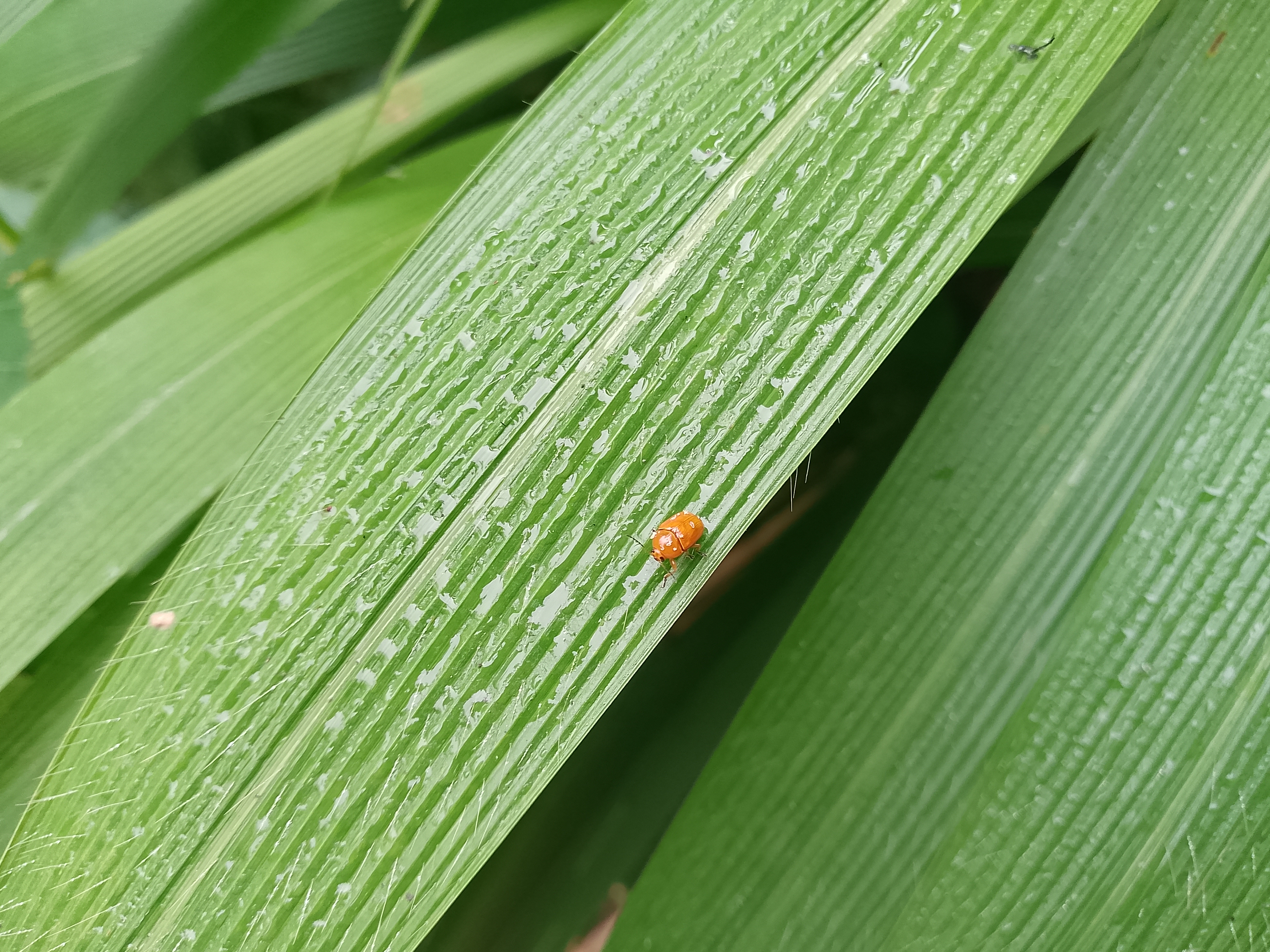It wasn't easy finding a ladybug anywhere I went down to my farm which is many kilometres away from home in search of the two insect required, the first insects I saw was a beautiful yellow butterfly but it wasn't easy to take a picture or video after walking around for a while I sporting this light brown ladybug siting on a leaf, it might interest you to know why I have two colours ladybug 🤣 the first one flew away half way through the video so I went in search of another one.