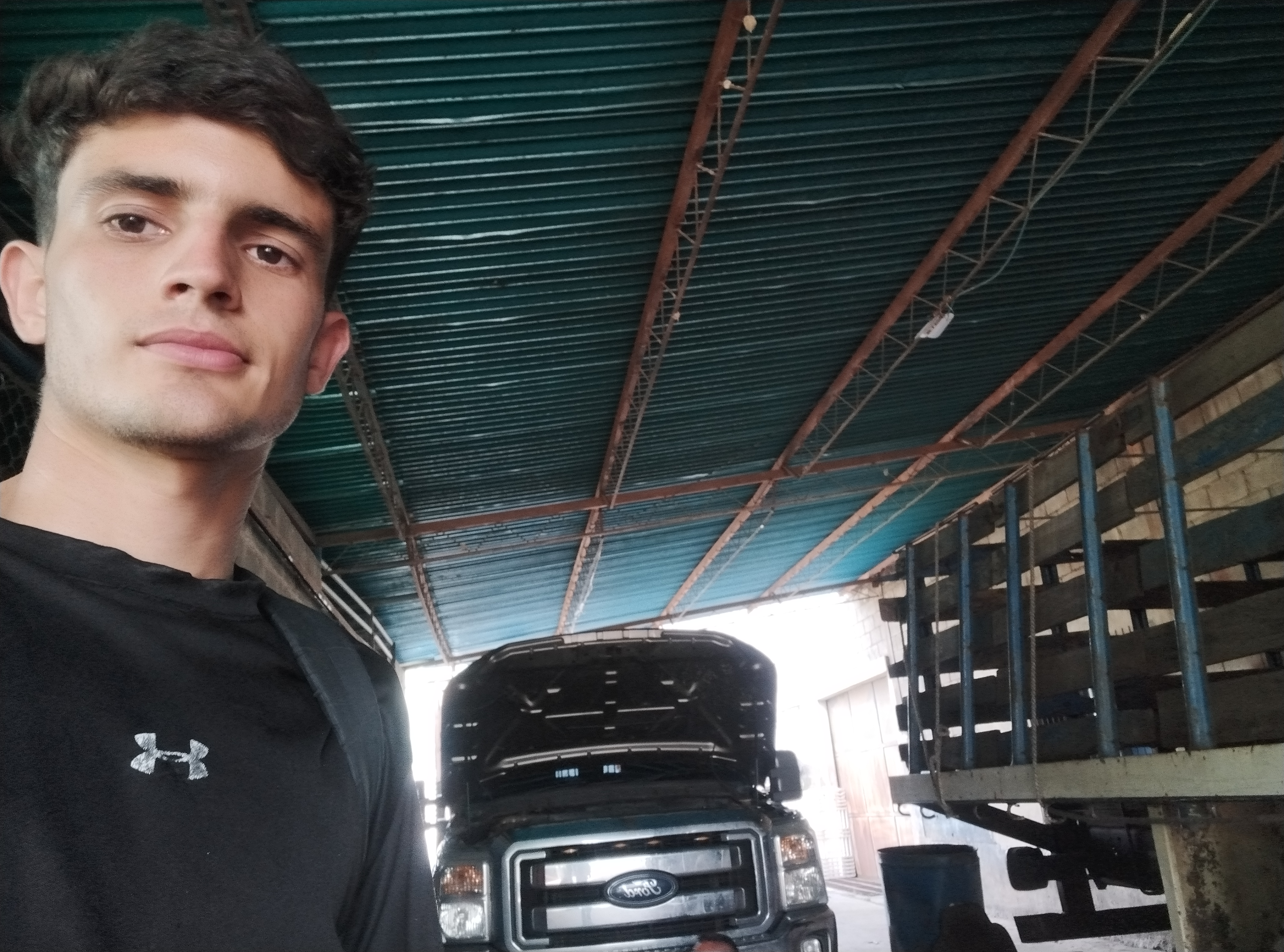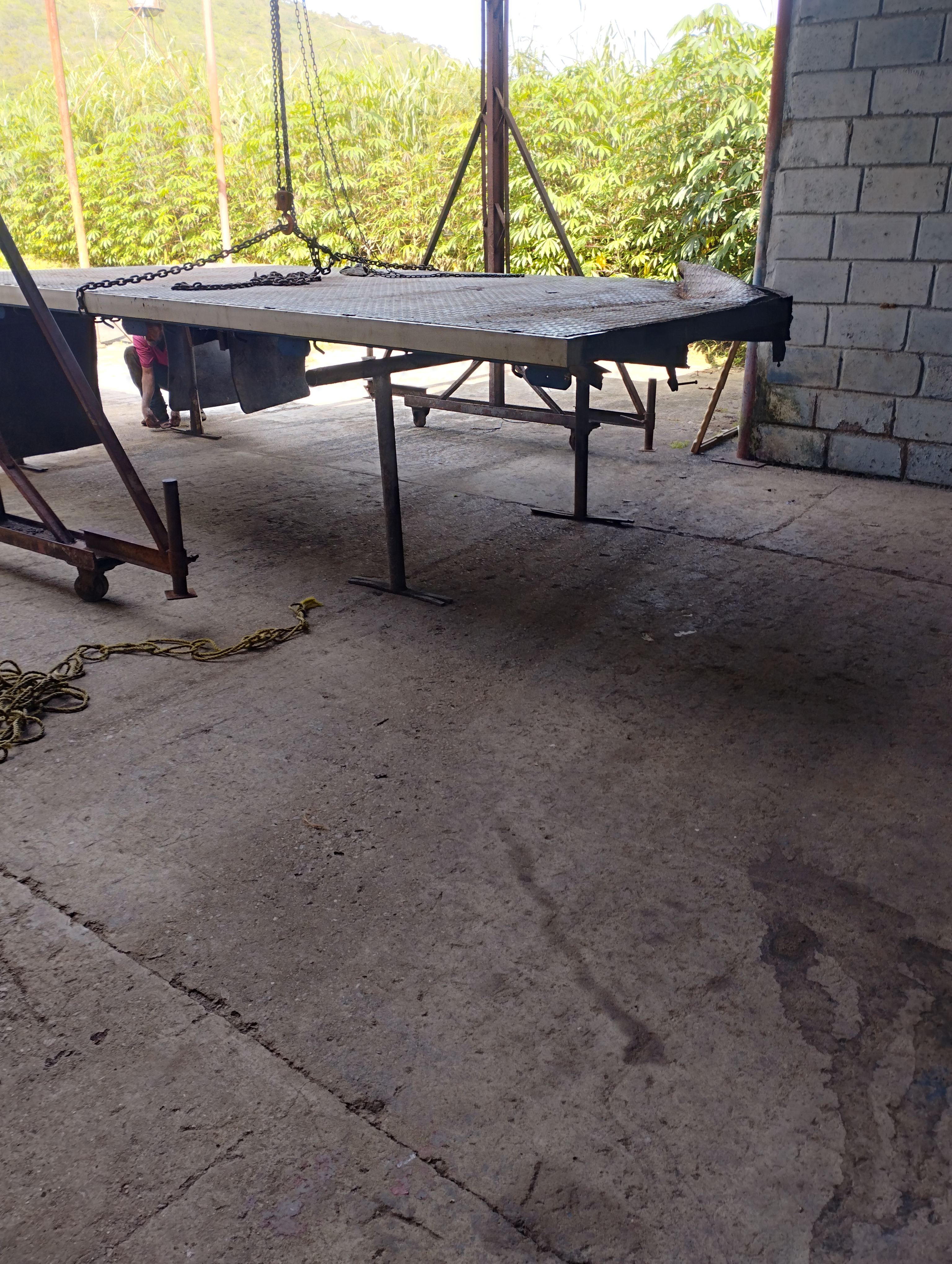 Bueno justamente cuando llegue a bejuma un pueblito que queda como a 15 minutos de mi pueblo, me puse a ayudarlo a bajar una plataforma de un camión, el cual el la va a restaurar porque está un poco mala ya que sufrió un accidente y de doblo un poco y el va a picar esos pedazos malos y poner unos nuevos, bueno yo ayude a subir y bajar la señorita, bueno así se le dice aquí a el implemento que usamos para levantar la plataforma, ya la dejamos solo montada un unos tubos para que el trabaje bien.