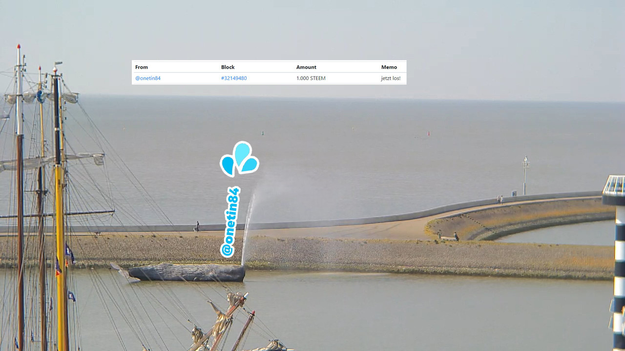 really there is a SteemWhale in the harbor of Harlingen (Netherlands) which you let spray per blockchain! All you need is just 1 STEEM or 1 SBD. I was so amazed by the idea to bring Steem to real life that i decided to write an article about to support the 🐳. Because i think the whale is missing something ❓