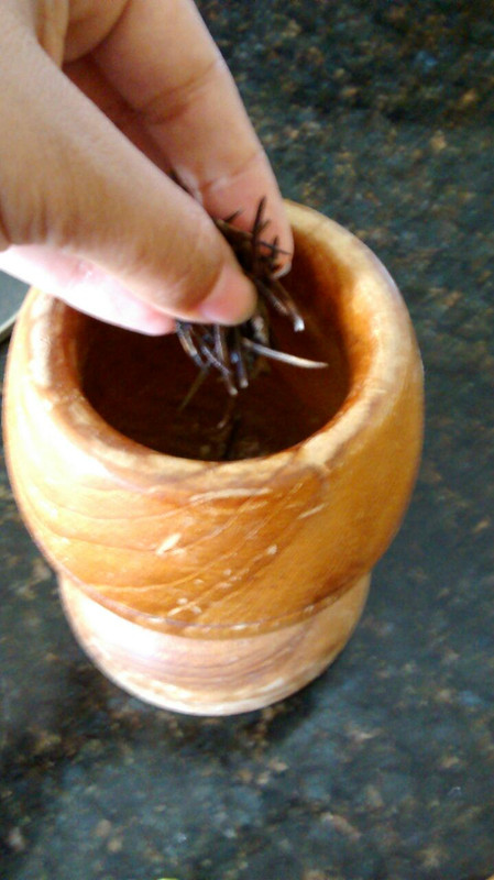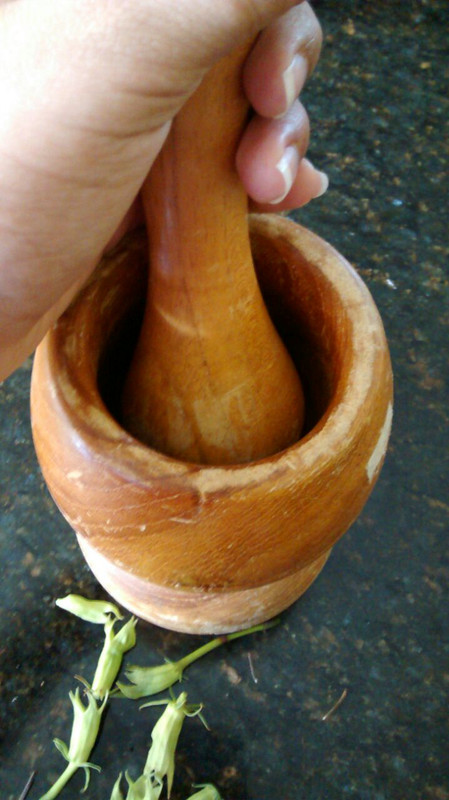 • Mientras tenemos esto en el fuego, tomamos el mortero y vamos a triturar los 20gr de romero.